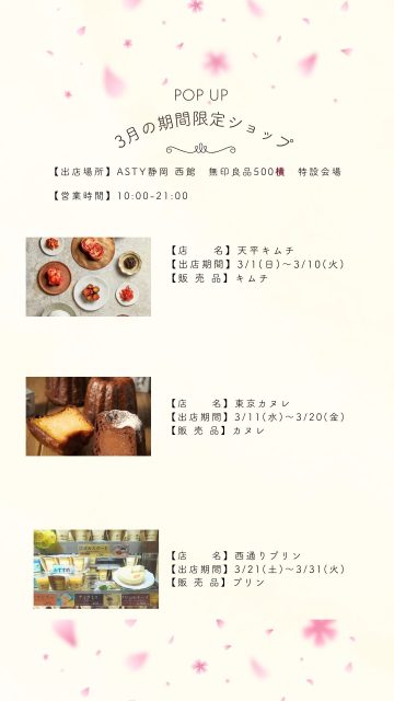 3月の期間限定ショップをご案内いたします。