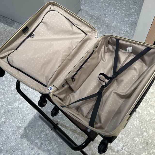 内装はシンプルですが、両面ともお荷物をしっかり固定できる作りになっています。