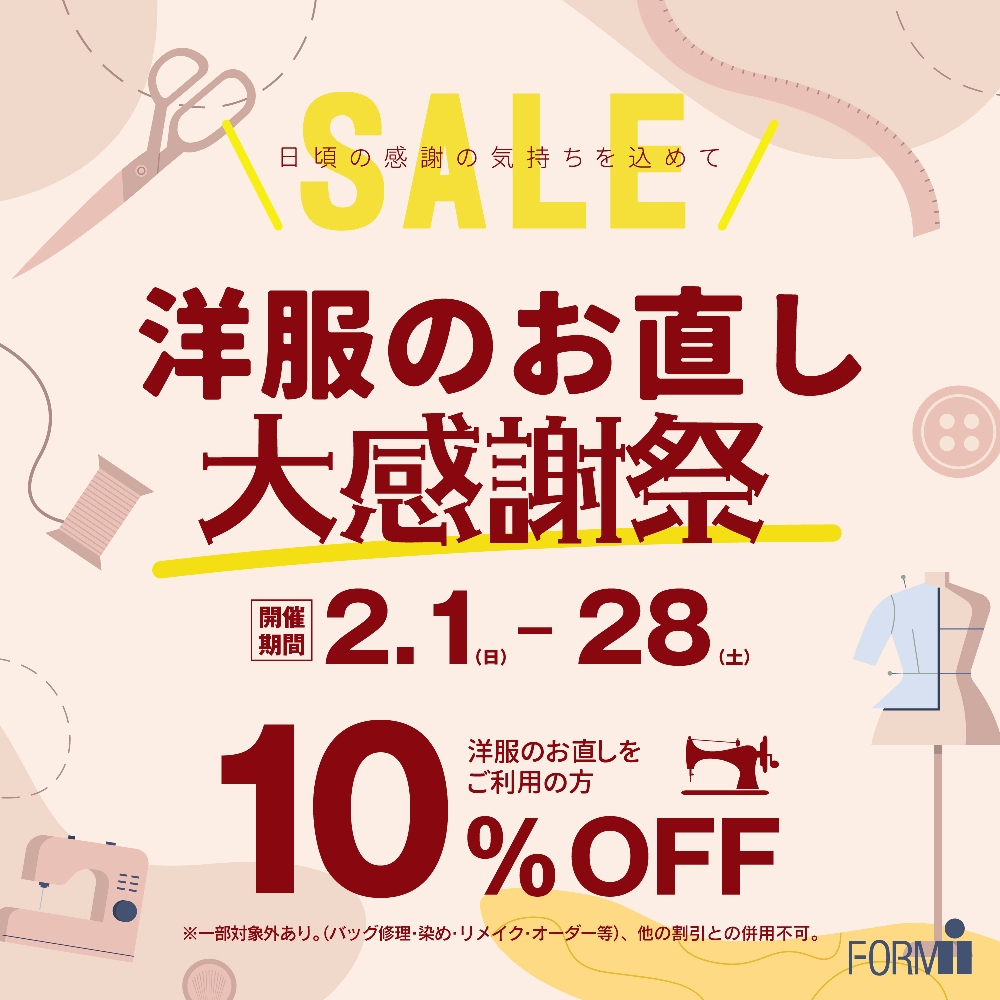 2月1日(日)より、『洋服のお直し』 大感謝祭🎉がスタート!!