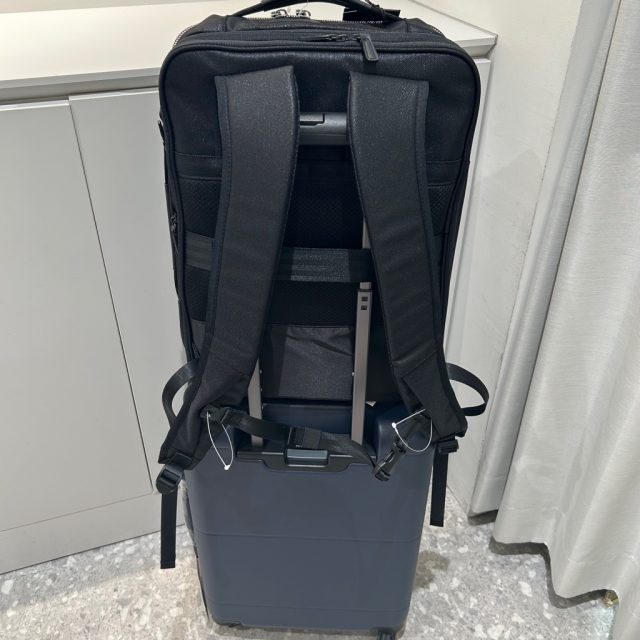 背面にはスーツケースにセットアップできるベルト付き👏🏻