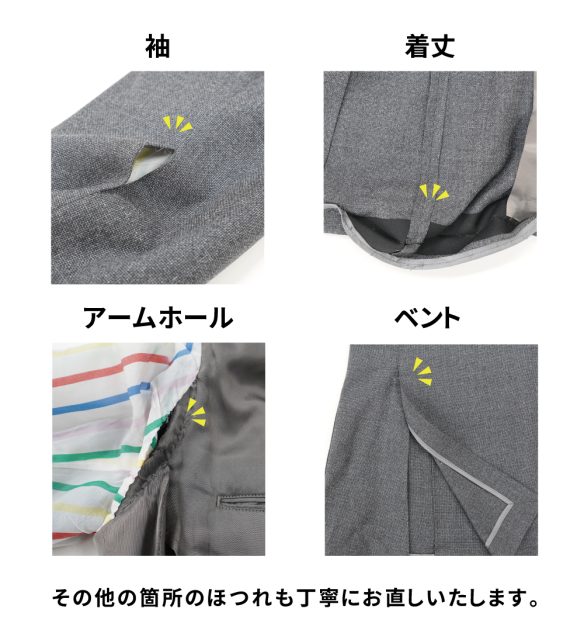 裏地がほつれたり破れたまま放置していると表地に負荷がかかってくるので、お手持ちのジャケットの裏地の状態をチェック!